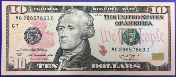 Recto : Effigie d'Alexander hamilton,