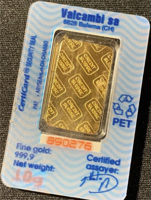 Lingot 10 Grammes Or 999,9 scellé Crédit Suisse