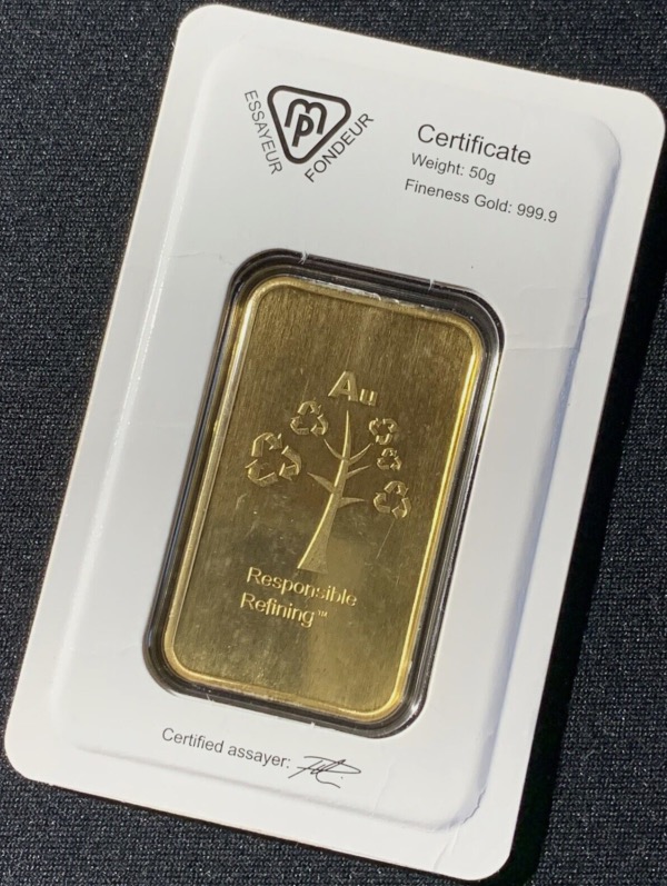 Lingot d'or 50g 999,9/1000 livré scellé avec certificat d'authenticité.